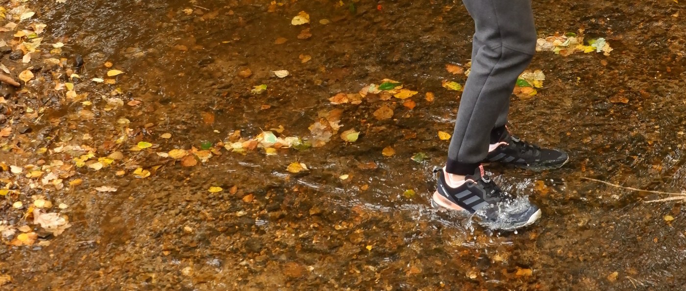 Voor ik het meestal weet, blijft mijn dochter wel eens stiekem achter op onze wandelingen en staat ze ergens met haar voeten in het water. Dus ook met haar nieuwe wandelschoenen nam ze niet doodleuk dat stevig houten bruggetje, maar gaat ze door het kabbelende water.