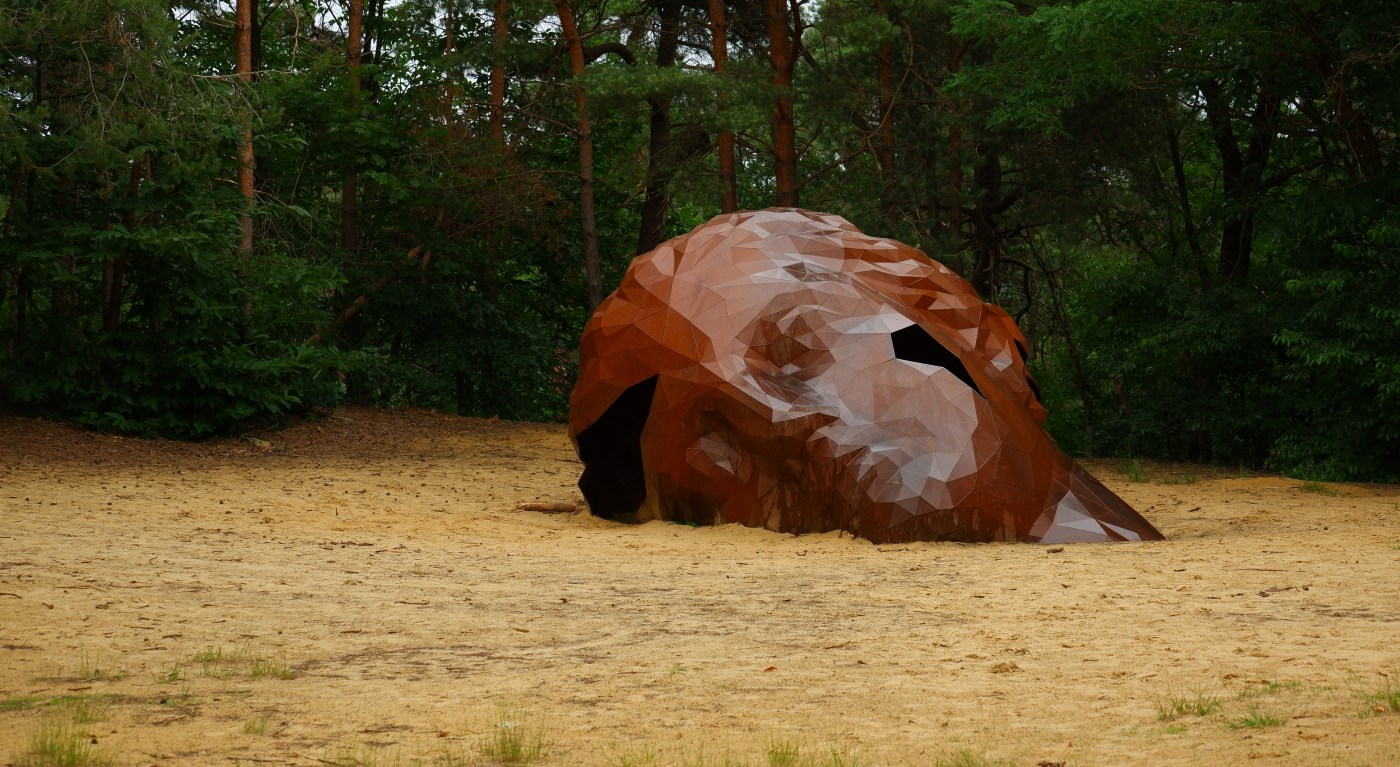 Hij ziet er in elk geval niet echt uit alsof je er schrik van krijgt deze reus. Het is eerder een mooie slapende heer of dame die haar hoofd uit het zand probeert om hoog te staan. Net alsof ze al honderd jaren onder het zand heeft geslapen en nu wil opstaan.